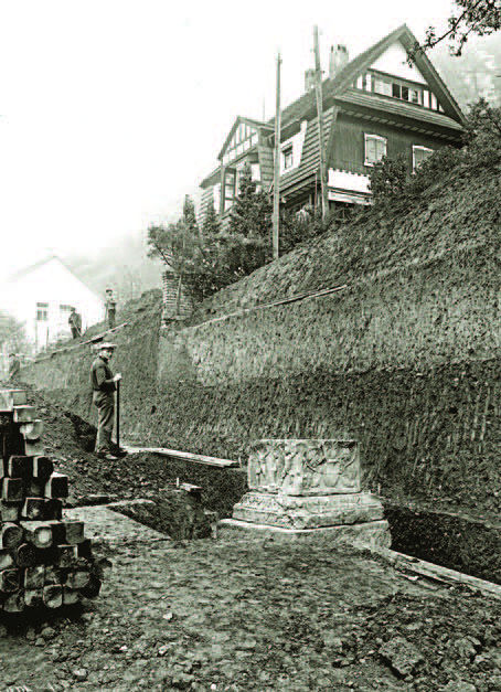 Reste eines Grabpfeilers in originaler Fundlage (RLM Trier Foto RC 1940)